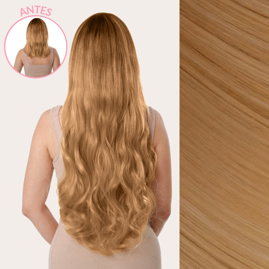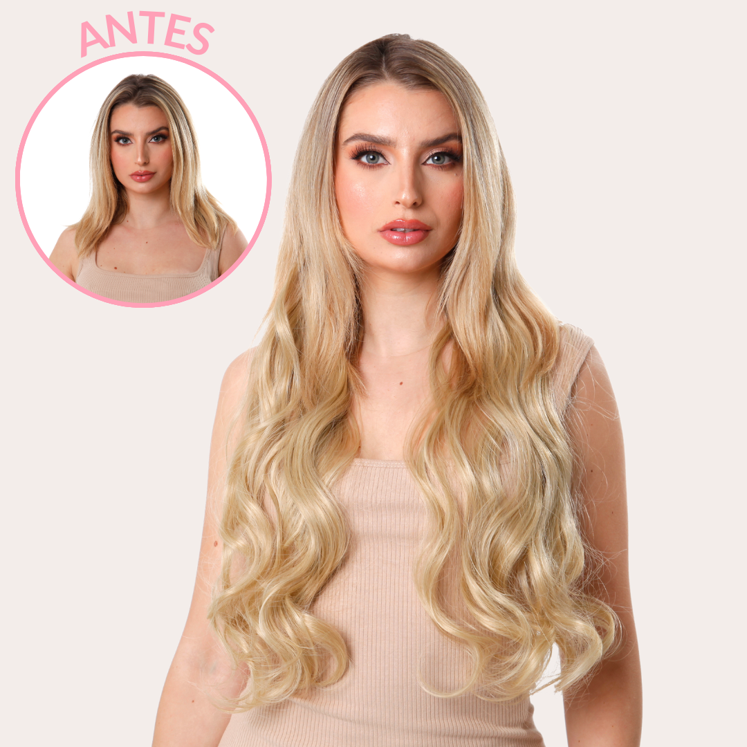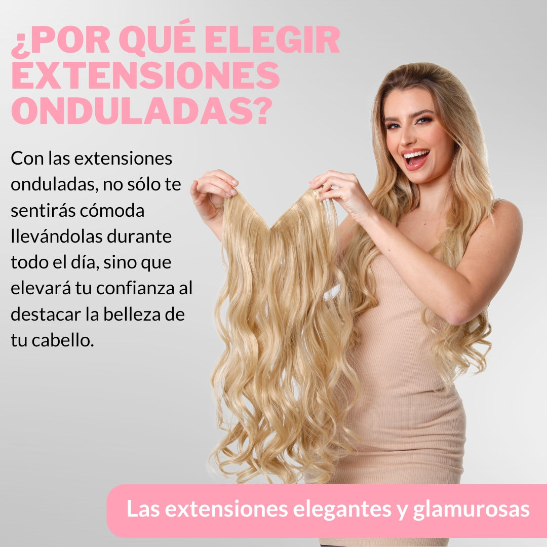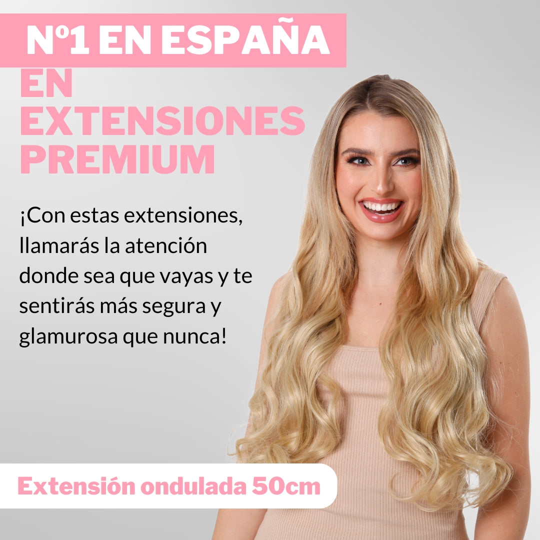 Descubre nuestras Extensiones Onduladas Híbridas Halo + Clips: diseñadas para darte una melena abundante, con ondas suaves y definidas que parecen 100 % naturales.