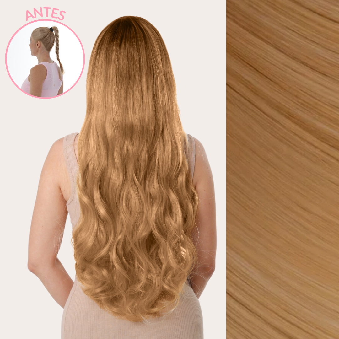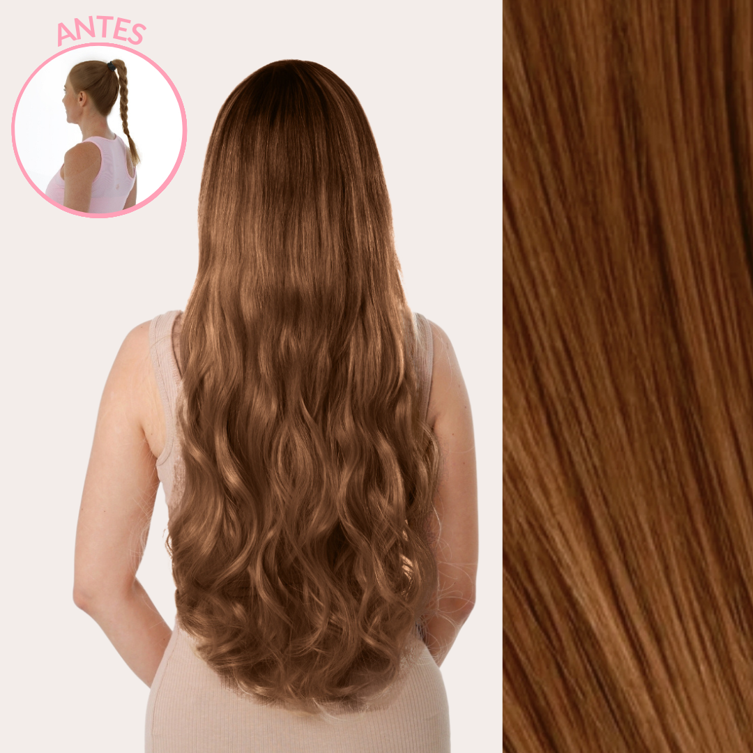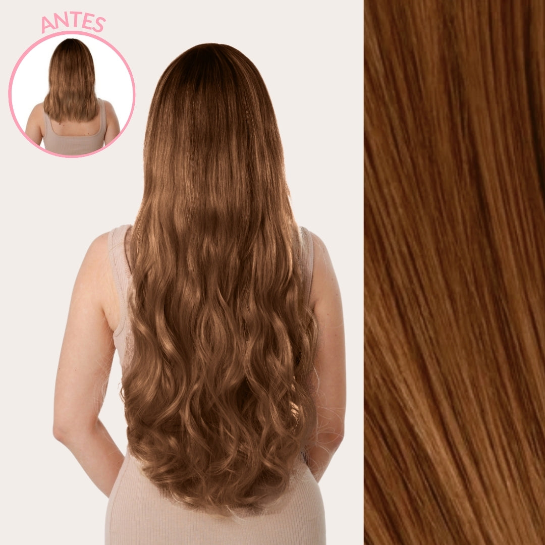 Descubre nuestras Extensiones Onduladas Híbridas Halo + Clips: diseñadas para darte una melena abundante, con ondas suaves y definidas que parecen 100 % naturales.
