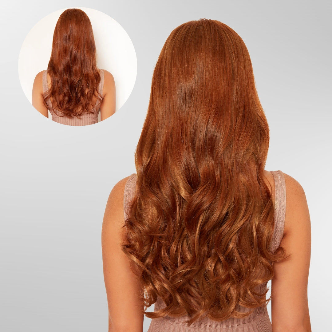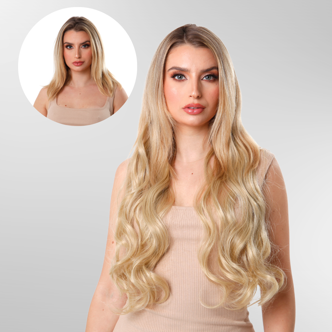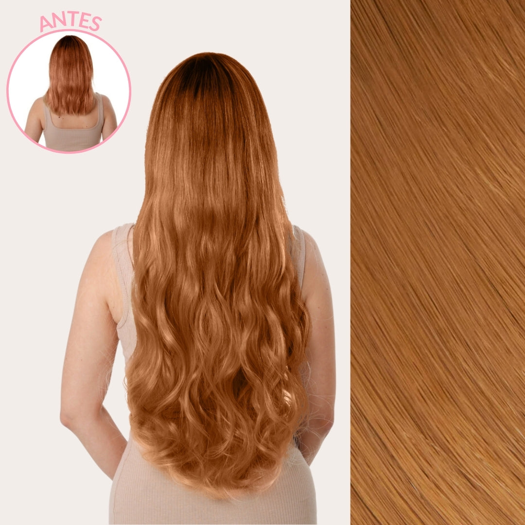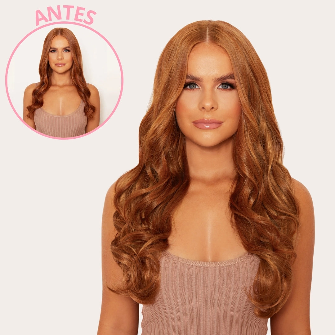 Descubre nuestras Extensiones Onduladas Híbridas Halo + Clips: diseñadas para darte una melena abundante, con ondas suaves y definidas que parecen 100 % naturales.