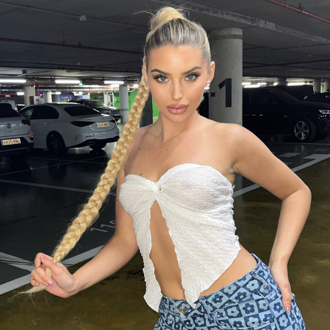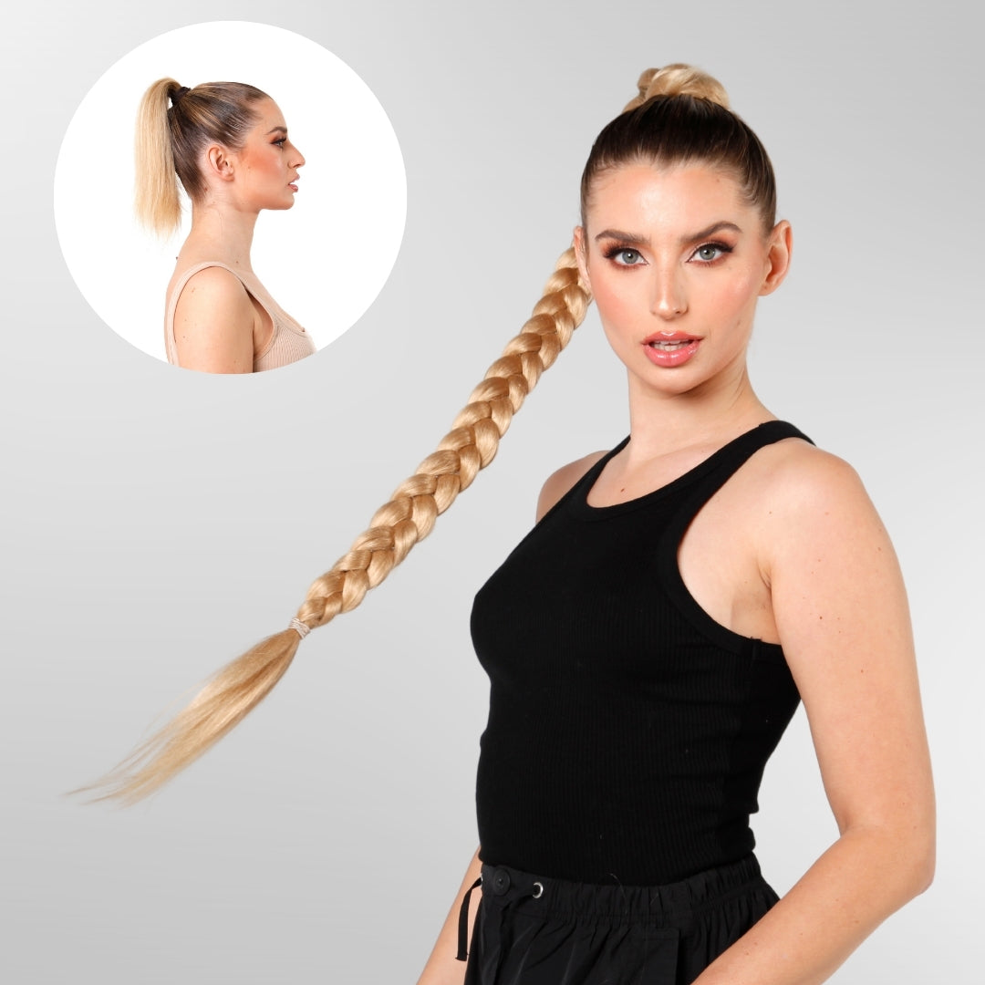 Si buscas un look elegante pero con carácter, la trenza Kim es tu mejor elección. Una sola trenza larga y perfectamente tejida que cae con una caída impecable y llena de volumen, aportando un aire de seguridad y empoderamiento en cada paso.