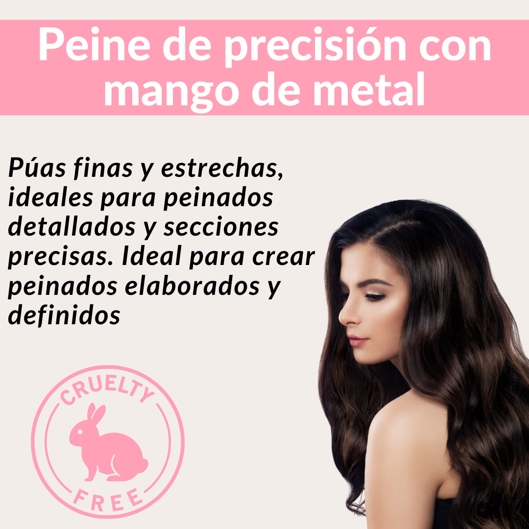 Peine de Estilista Profesional con Punta Metálica - Rosa