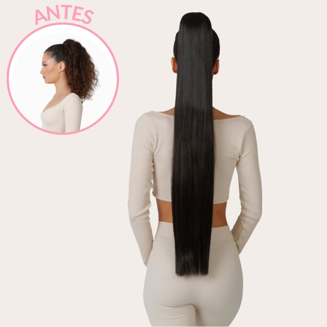 Ideal para ocasiones especiales o para cuando quieras sentirte poderosa y radiante. Su longitud extrema y su caída perfecta aportan un estilo sofisticado y atrevido que no pasará desapercibido. Además, su sistema de sujeción es tan cómodo que te hará olvidar que la llevas puesta.