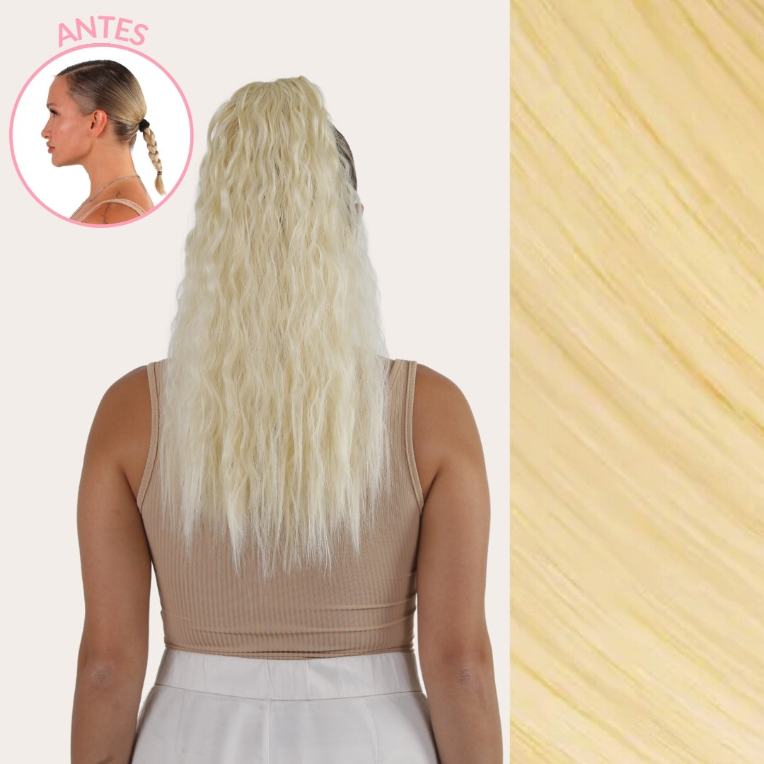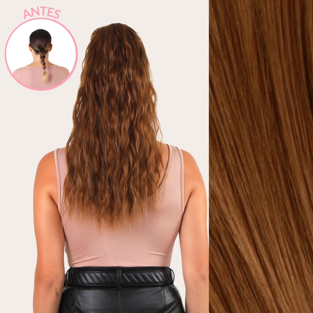 Sus rizos definidos y llenos de vida aportan ese toque glam que necesitas para cualquier ocasión, ya sea una salida casual o una noche especial. Además, su sistema de sujeción es tan cómodo y seguro que podrás llevarla todo el día sin preocuparte.