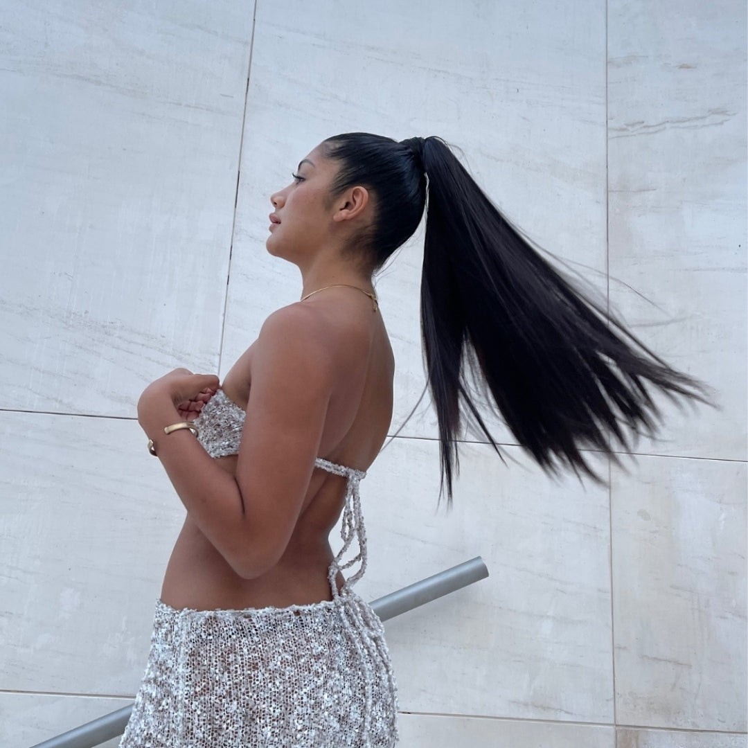 💖 Deslumbra con una melena de impacto y conquista miradas donde vayas. ¡La coleta Khloe está hecha para destacar! ✨